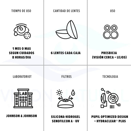 ¿Te cuesta ver de cerca sin gafas? Los lentes de contacto multifocales son la solución ideal para corregir la presbicia o vista cansada, permitiéndote ver de cerca, lejos y a distancias intermedias sin cambiar de gafas. En Óptica Visión Natural ofrecemos todas las marcas líderes en Colombia, como Air Optix Multifocal, Biofinity Multifocal, Acuvue Oasys for Presbyopia y más.