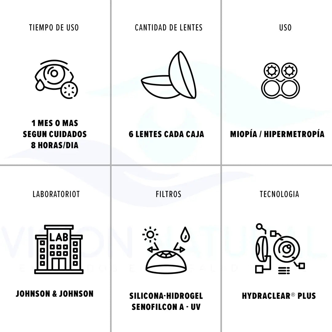ACUVUE®OASYS con HYDRACLEAR® PLUS ofrece protección UV y tecnología de hidratación. Ideal para comodidad y rendimiento prolongado. Descubra diferentes tipos de lentes disponibles, cuidados necesarios, información para nuevos usuarios y variedad de productos según las necesidades visuales. ¡Obtén tus lentes de contacto con Vision Natural!