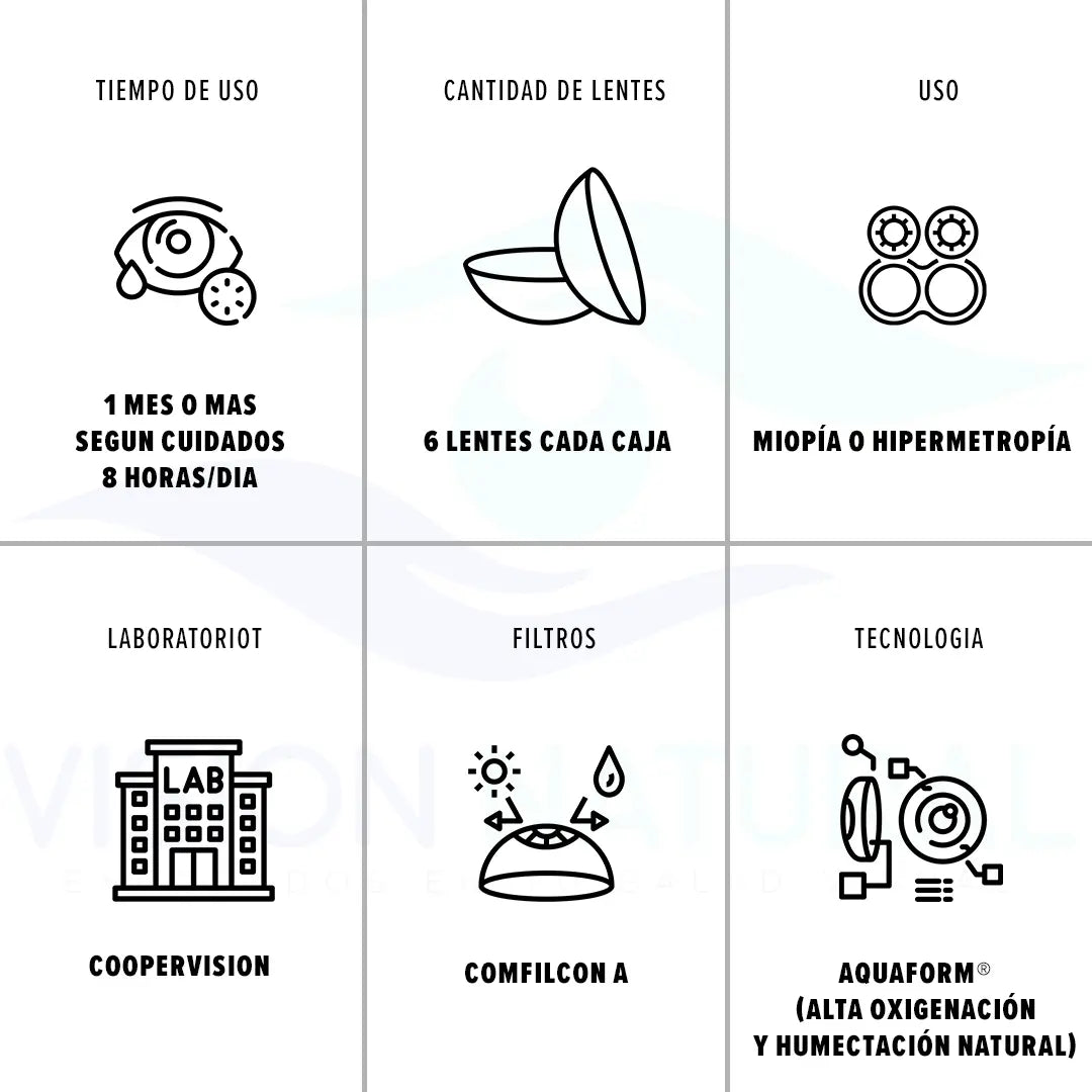 Biofinity incorpora la tecnología Aquaform®, que permite una mayor retención de humedad y un flujo de oxígeno superior a través de la lente. Esto no solo mejora la comodidad, sino que también reduce la sequedad y la irritación, manteniendo tus ojos frescos y saludables.