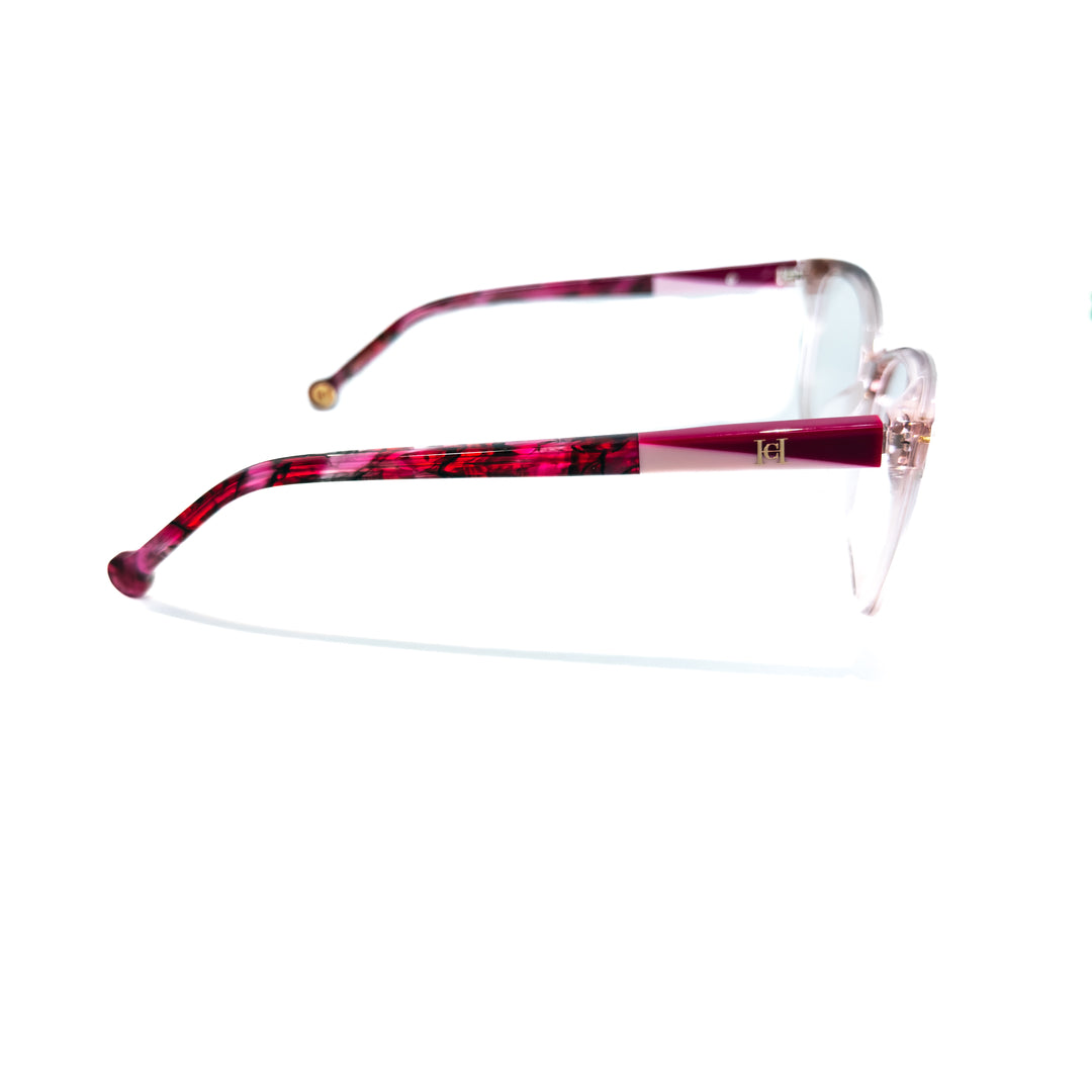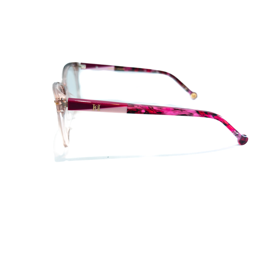 La montura original Carolina Herrera en acetato destaca por su diseño delicado y delgado en tamaño grande, ideal para mujeres que buscan ligereza y presencia en un solo accesorio. Su color rosado traslúcido aporta luminosidad y un estilo femenino que realza el rostro de forma natural.
